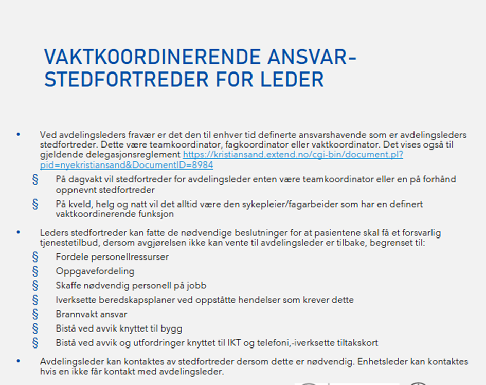 - Gi beskjed videre til de andre på vakt, evt melde videre til leder/teamkoodnator når det er nødvendig
