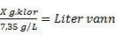2. Finn antall liter vann som skal i doseringstanken ved å sette inn klorkonsentrasjonen i følgende formel: