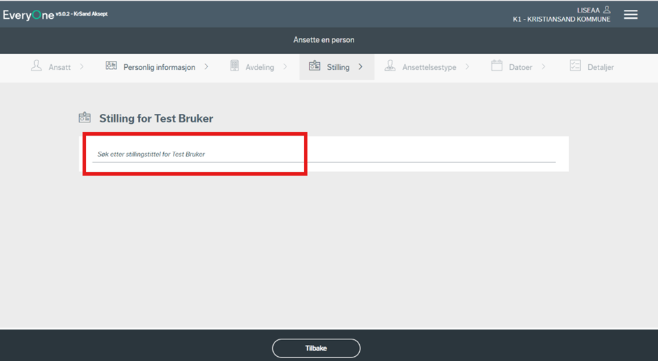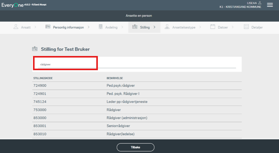 Du søker deretter opp stillingstittel for stillingen.