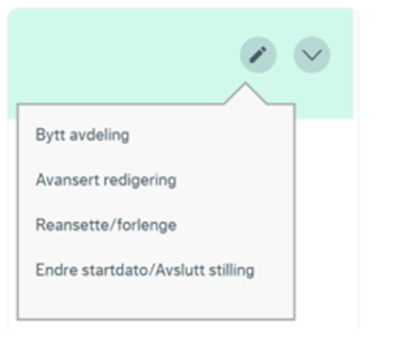 Du finner "endre dato på stilling" ved å trykke på blyantikonet på stillinger som vises på den ansattes profilside.