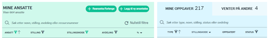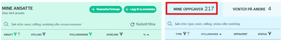 Arbeidsflaten i modulen er delt inn i «mine ansatte» og «mine oppgaver».