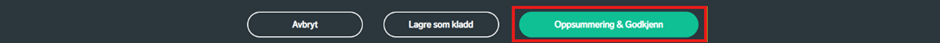 Etter all registrering er gjort, kan du trykke "oppsummering & godkjenn". Dersom flere detaljer skal registreres, kan utkastet lagres ved å trykke "lagre som kladd".
